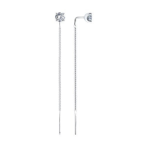 Восхитительные серьги продевки с утончёнными цепочками, украшенные фианитом, раскроют всю нежность и воздушность вашего образа. Украшение выполнено из родированного серебра 925 пробы. Изделие представлено брендом SOKOLOV. В комплект поставки входит: