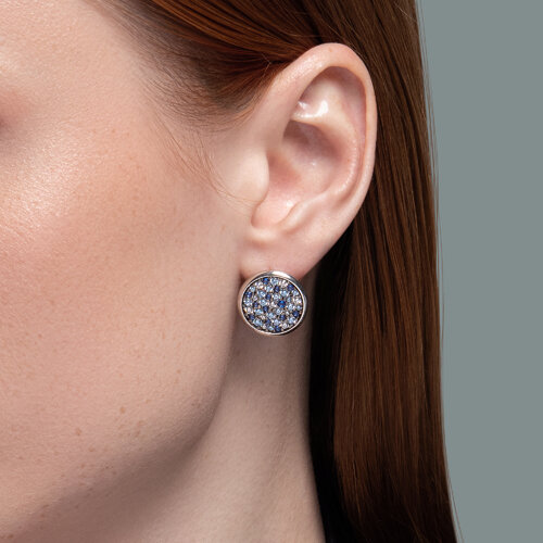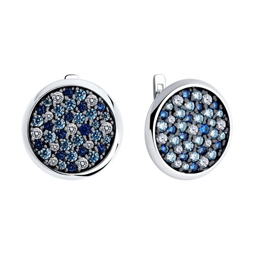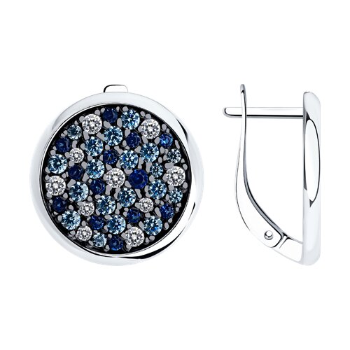 Изящные серьги из серебра украшены синими и белыми фианитами, создающими гармоничный контраст