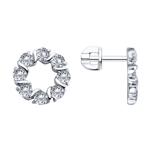 Стильные серьги-пусеты, выполнены из серебра 925 пробы, украшены сверкающими фианитами