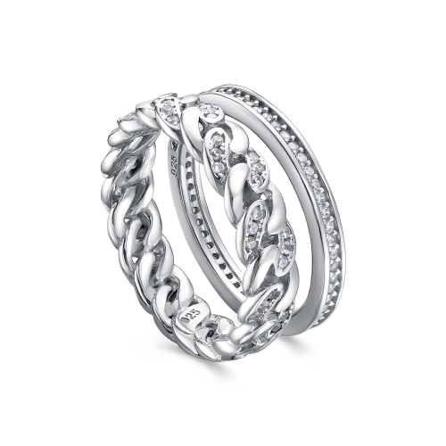 Стильное кольцо, выполнено из серебра 925 пробы, украшено россыпью сверкающих фианитов