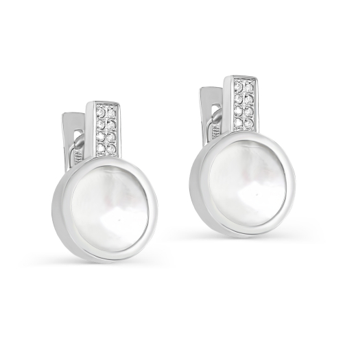Серьги из серебра 925 пробы с перламутром и фианитами