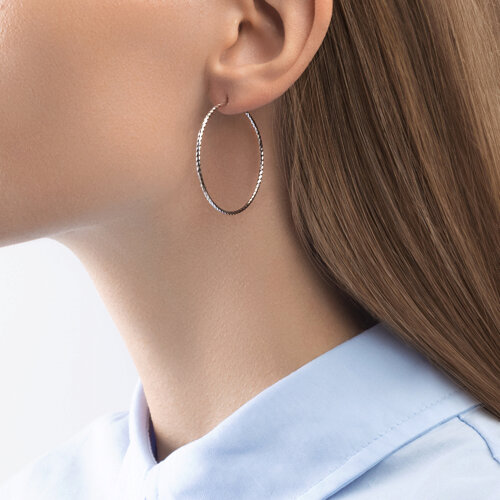 Серьги-конго диаметром 35мм выполнены из белого золота 585 пробы