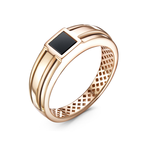 Стильная мужская печатка выполнена из красного золота 585 пробы, украшенная чёрной эмалью