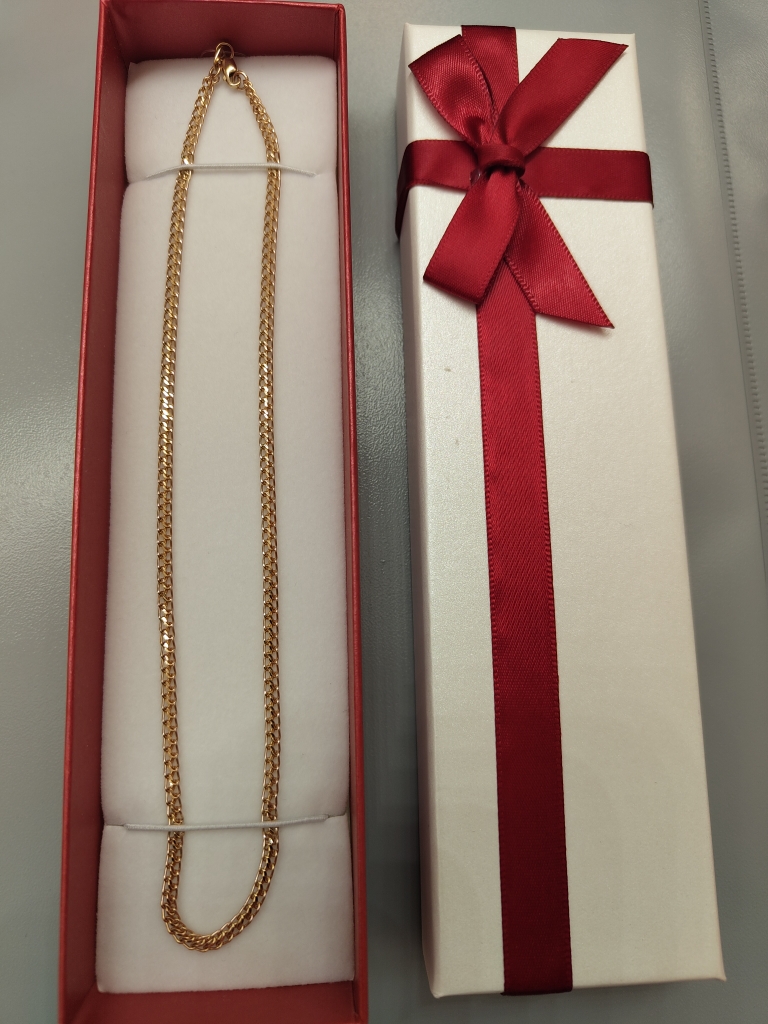 Для дочки-выпускницы подобрала нежную красивую цепочку, не тонкая и не грубая. Подойдет под любую подвеску. Первый золотой подарок)! Консультант посоветовала длину 45 см. Дочке понравилась. Отмечу что украшение фабричного качества + предоставлена годовая гарантия, что очень радует. Спасибо !