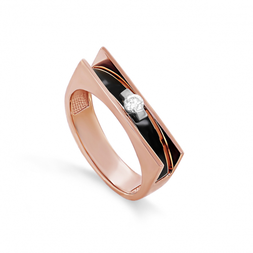 Кольцо из красного золота 585 пробы с бриллиантом и холодной эмалью от российского бренда Kabarovsky