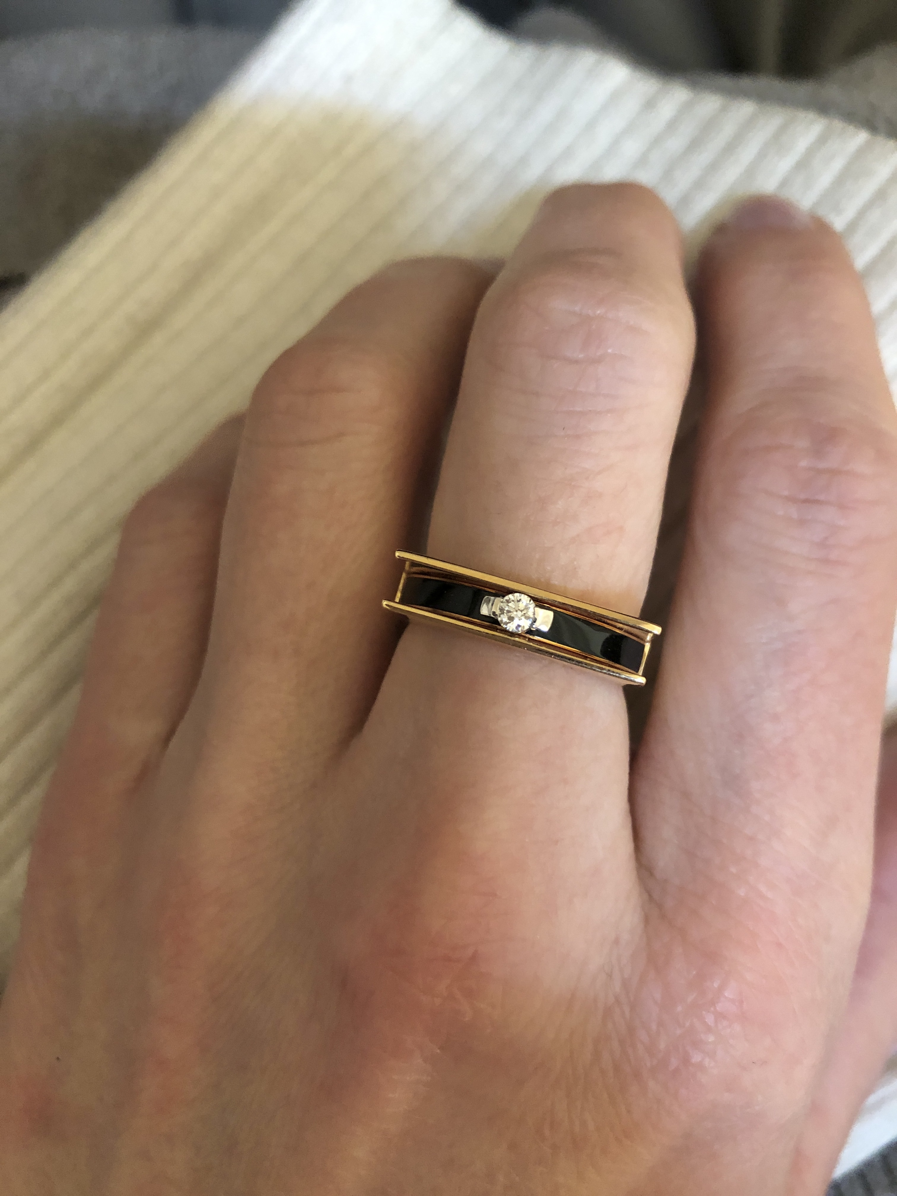 В комплект к серьгам купили колечко. Оно очень красивое, современное в исполнение и стильное. Достаточно хороший вес, ношу каждый день и не боюсь что с ним что-то случится.