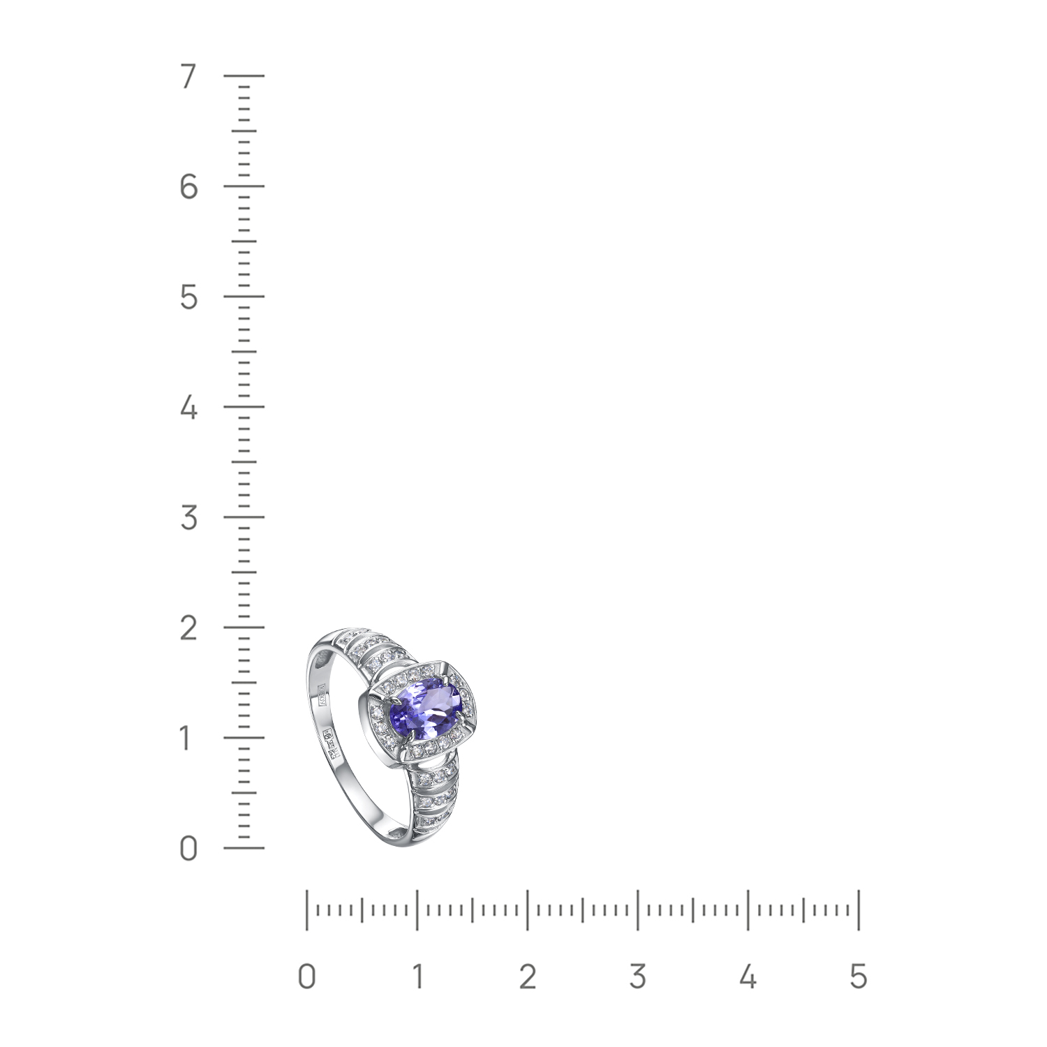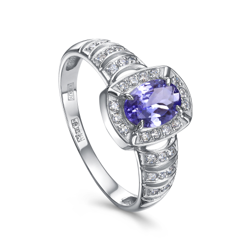 Кольцо с природным танзанитом, красоту которых подчёркивает дорожка сверкающих бриллиантов, из белого золота 585 пробы