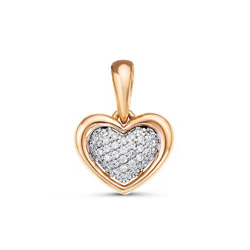 Символичная подвеска в виде сердца с сияющими бриллиантами, выполнена с сочетанием красного и белого золота 585 пробы