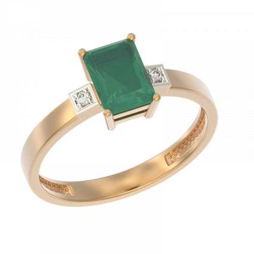 Яркое и привлекательное кольцо с зелёными агатами и одиночными фианитами выполнено из красного и белого золота 585 пробы