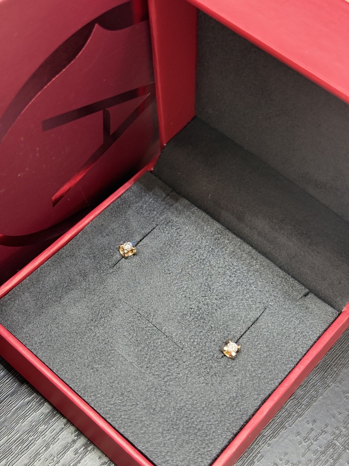 Серьги-пусеты с сверкающими бриллиантами, выполнены из красного золота 585 пробы