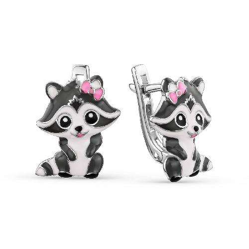 Детские серебряные серьги в виде милого енотика с эмалью — это забавное украшение, которое обязательно понравится маленьким модницам