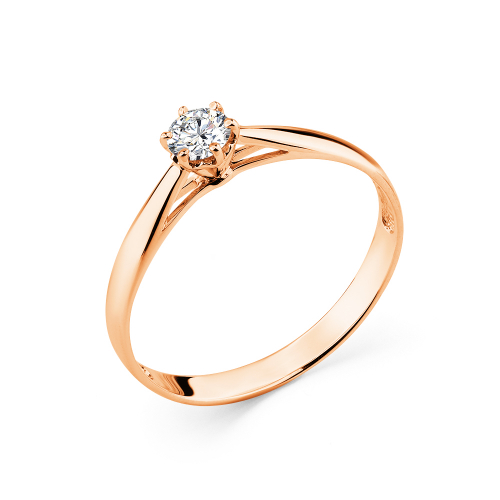 Элегантное кольцо классического дизайна с роскошным сверкающим бриллиантом выполнено из красного золота 585 пробы