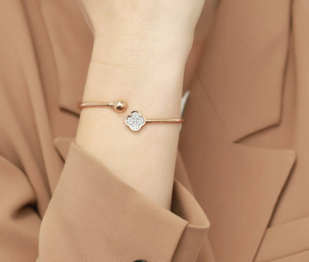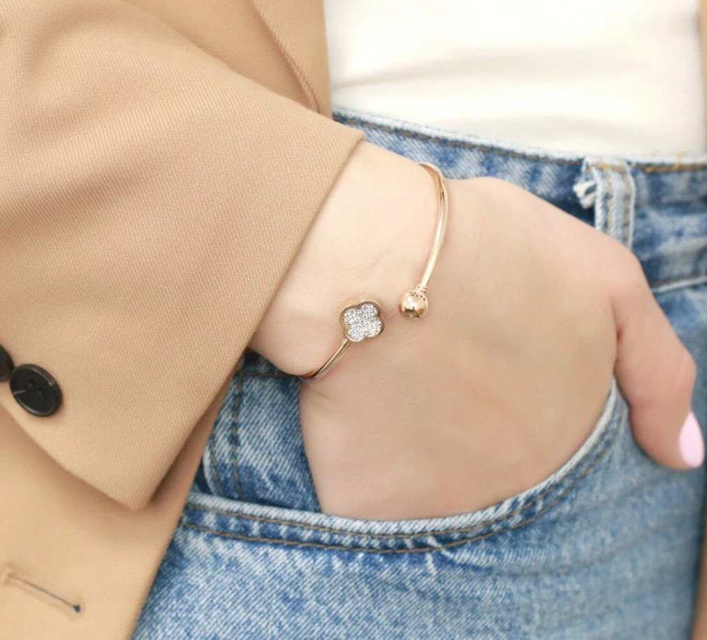 Жесткий браслет в виде клевера — это стильный и оригинальный аксессуар, который придаст вашему образу особый шарм и индивидуальность