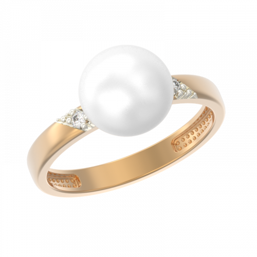 Нежное классическое кольцо выполнено в сочетании красного и белого золота 585 пробы, украшено белым жемчугом в инкрустации сверкающих фианитов
