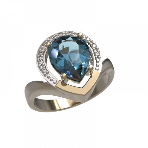 Кольцо с голубым топазом и фианитами выполнено из красного и белого золота 585 пробы. Топаз выглядит особенно ярко, украшенный деликатным блеском сияющих фианитов. Такая модель – идеальный вариант на повседневную носку.