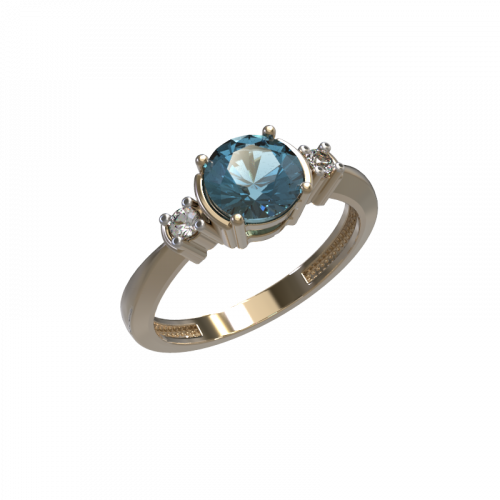 Кольцо с голубым топазом, красоту и блеск которого подчёркивают искры фианитов, выполнено из красного золота 585 пробы