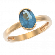 Нежное кольцо выполнено из красного золота 585 пробы, украшено великолепным голубым топазом овальной формы.