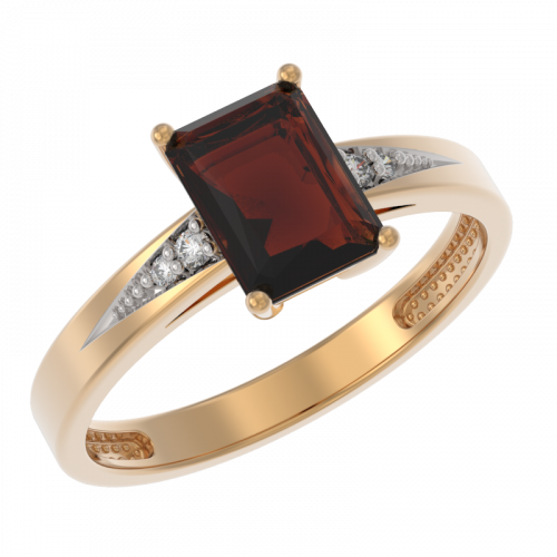 Роскошное кольцо выполнено из красного золота 585 пробы, украшено великолепным гранатом и сияющими фианитами