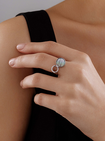 Необычное и изысканное кольцо из серебра 925 пробы подчеркнет Ваш имидж. Стильный перламутр выразит Вас, отлично сочетается с любым луком. Покрытие родием обеспечивает украшению дополнительный блеск и длительную сохранность внешнего вида. Средние характеристики вставки: 1 Перламутр черный Черный Диск 1,567. Украшение представлено брендом Алькор. В комплект поставки входит: