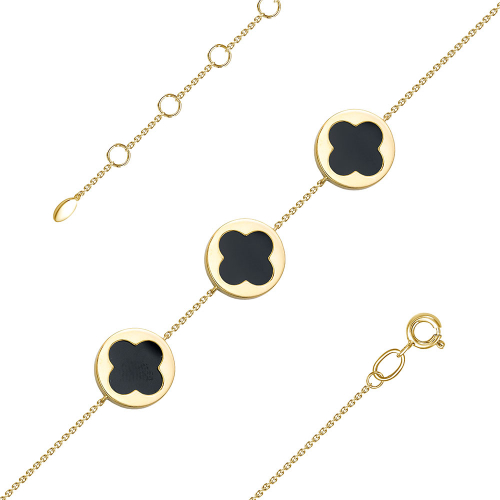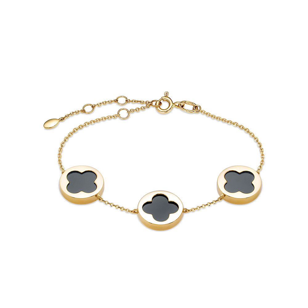 Золотой браслет с ониксом — изысканное украшение, сочетающее благородство желтого золота и мистическую глубину черного камня