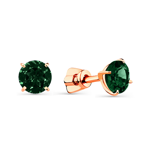 Лаконичные серьги-пусеты с зелёными турмалинами выполнены из красного золота 585 пробы