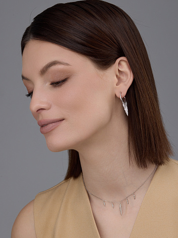 Базовое колье из серебра 925 пробы, стилистические подвесы Перья, отлично подчеркнет индивидуальность. Украшение представлено брендом Алькор. В комплект поставки входит: