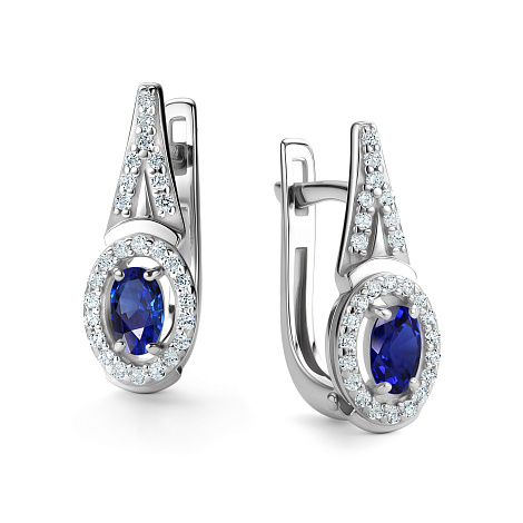 Серьги с гидротермальными сапфирами насыщенного синего цвета и сверкающими фианитами, выполнены из серебра 925 пробы. Классический дизайн украшения универсально подходит к любому образу и способен изящно завершить любой наряд. Украшение дополнительно покрыто родием - металлом платиновой группы, который защищает поверхность от внешних воздействий и придает искрящийся яркий блеск. Тип замка - английский, самый надежный и удобный. Изделие представлено брендом Алькор. Вставка: 2 Г.Т.сапфир Синий Овал 0,497