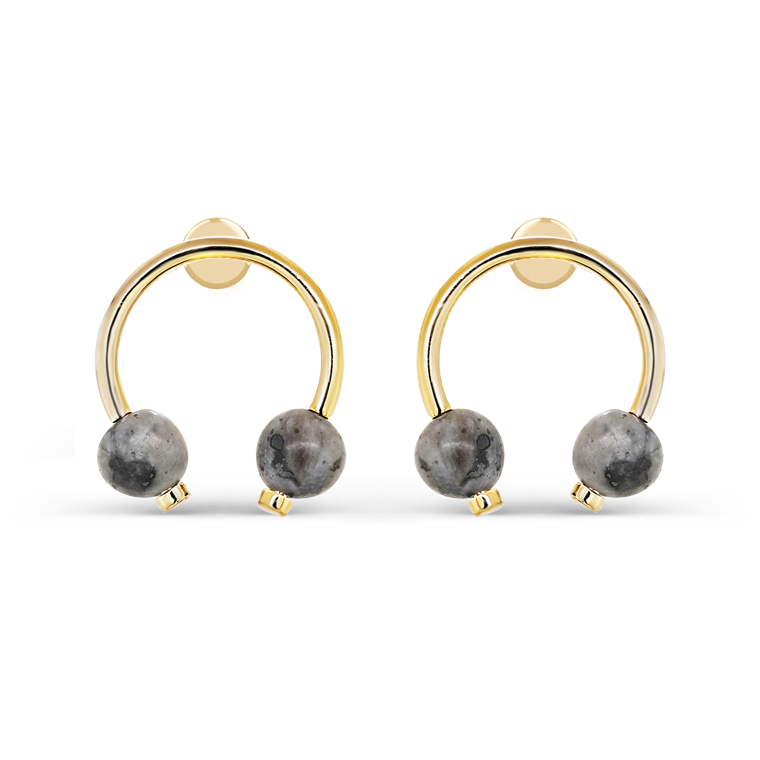 Великолепные серьги-пусеты, украшены лабрадоритами из серебра 925 пробы, с применением технологии золочения и родирования
