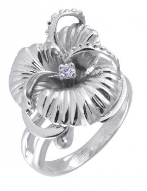 Нежное кольцо, в виде открытого цветка азалии , выполнено из серебра 925 пробы, украшено сверкающим фианитом Сваровски