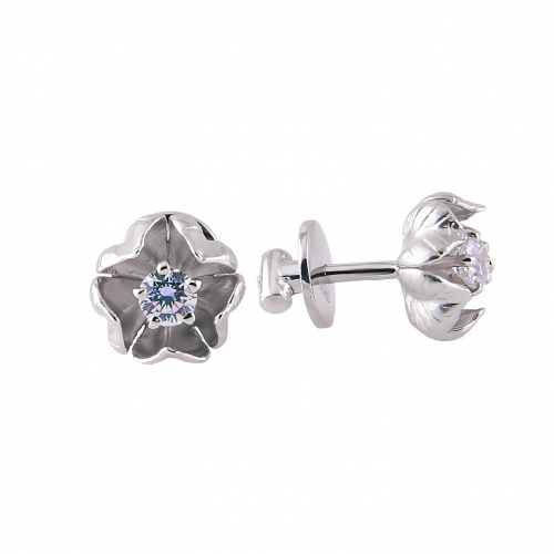 Серьги-пуссеты в виде цветка выполнены из серебра 925 пробы с фианитами Сваровски от бренда Альдзена