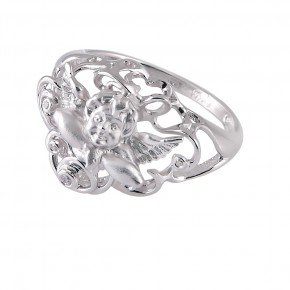 Нежное кольцо, с изображением ангела, выполнено из серебра 925 пробы, украшено сверкающими фианитами Сваровски.