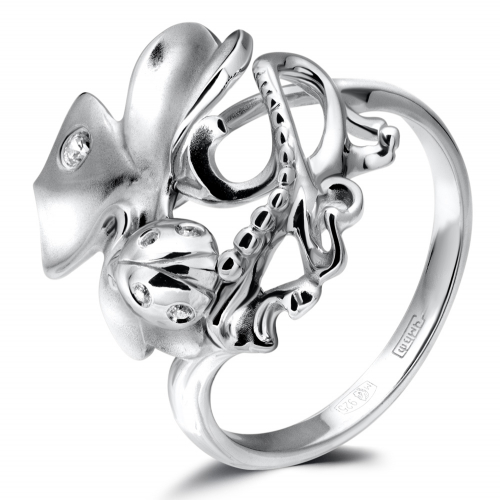 Нежное кольцо с флористическими акцентами выполнено из серебра 925 пробы