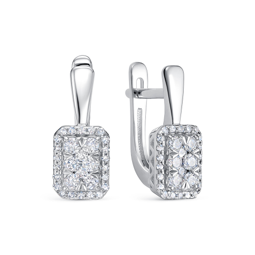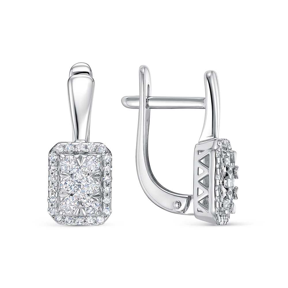Роскошные серьги из белого золота 585 пробы с бриллиантами. Россыпь камней придает серьгам одновременно изящность и воздушный объем. Тип замка - английский, самый надежный и удобный. Модель лаконичная, с очень комфортной посадкой на ухо, за счет расположения замковой части ниже, чем декоративной части серьги. Средние характеристики втсавки: 12 Бриллиант Круг 57 40-30 0.362 3 6, 4 Бриллиант Круг 57 60-40 0.087 3 6, 44 Бриллиант Круг 17 400-200 0.218 2 2 Изделие представлено брендом VESNA. В комплект поставки входит:
