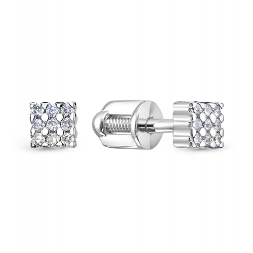 Роскошные серьги-пусеты выполнены в геометрическом дизайне из белого золота 585 пробы, украшены россыпью искрящихся бриллиантов