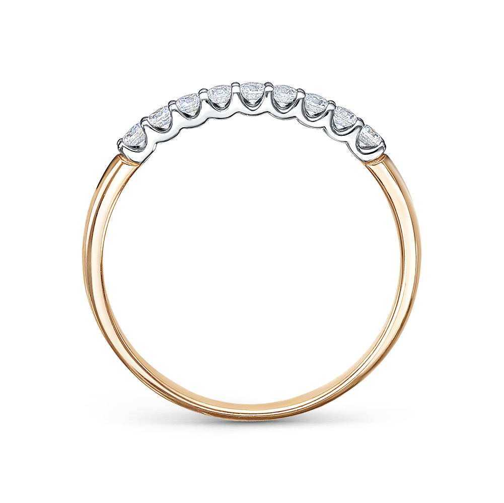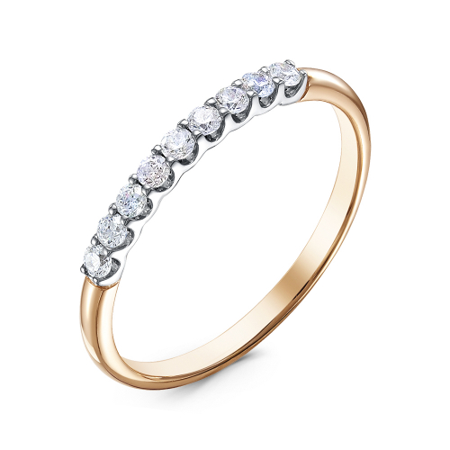 Кольцо, украшенное дорожкой бриллиантов, выполнено из белого и красного золота 585 пробы