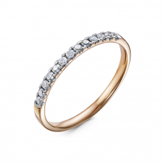 Кольцо, украшенное дорожкой сверкающих бриллиантов, выполнено из красного золота 585 пробы