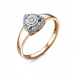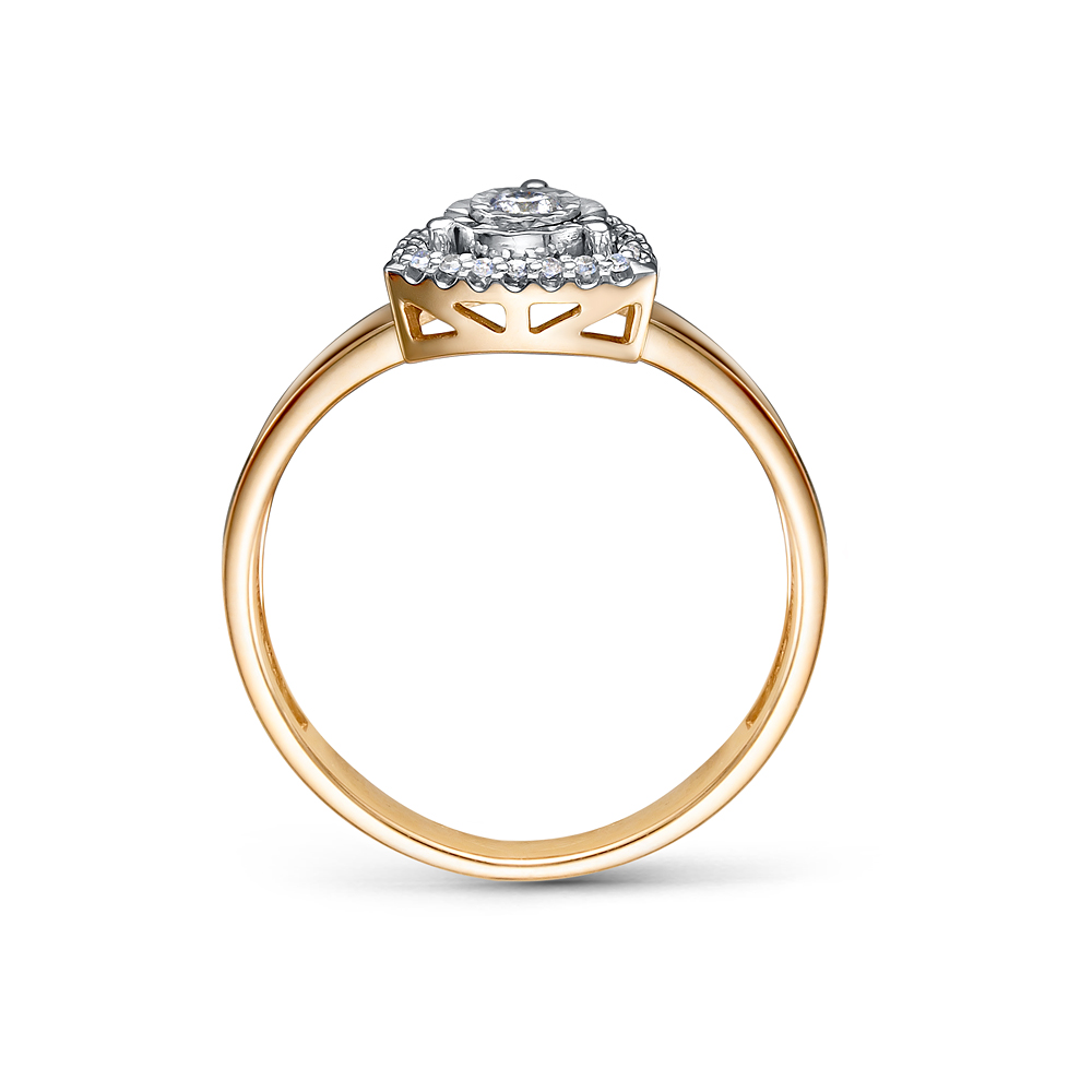 Геометричное кольцо выполнено из красного и белого золота 585 пробы с яркими бриллиантами