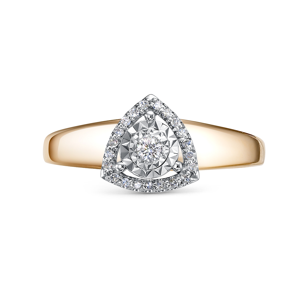Геометричное кольцо выполнено из красного и белого золота 585 пробы с яркими бриллиантами. Оригинальный дизайн вдохновлён ювелирной модой и подан в современном актуальном исполнении. Изделие представлено брендом ROSE GRACE. Средняя характеристика камней: 1 Бр Кр 57 2,20 25-20 4/6А - 0,04 ct.; 21 Бр Кр 17 0,8 400-200 2/3А - 0,063 ct. В комплект поставки входит: