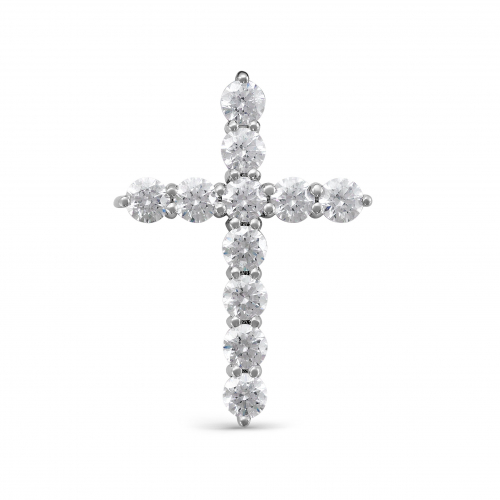 Роскошная подвеска в виде креста, выполнена из белого золота 585 пробы, украшена великолепными сияющими бриллиантами. Закрепка камней в белом золоте визуально увеличивает их объем и подчеркивает блеск и красоту. Изделие представлено брендом "ROSE GRACE".