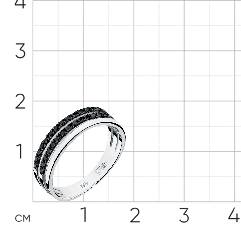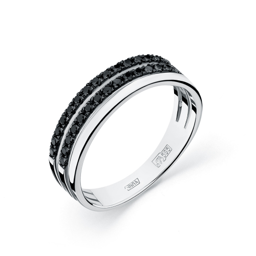Стильное кольцо, украшенное двойной дорожкой чёрных сверкающих бриллиантов, выполнено из белого золота 585 пробы