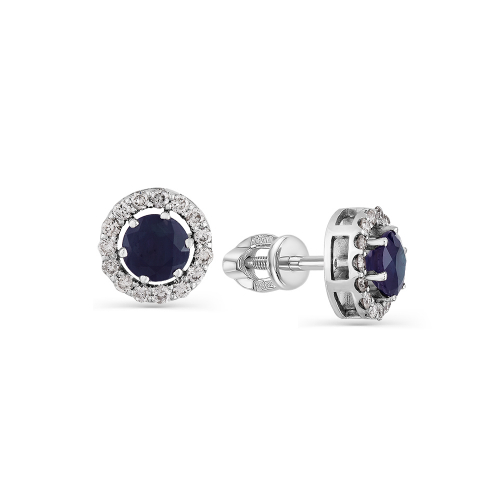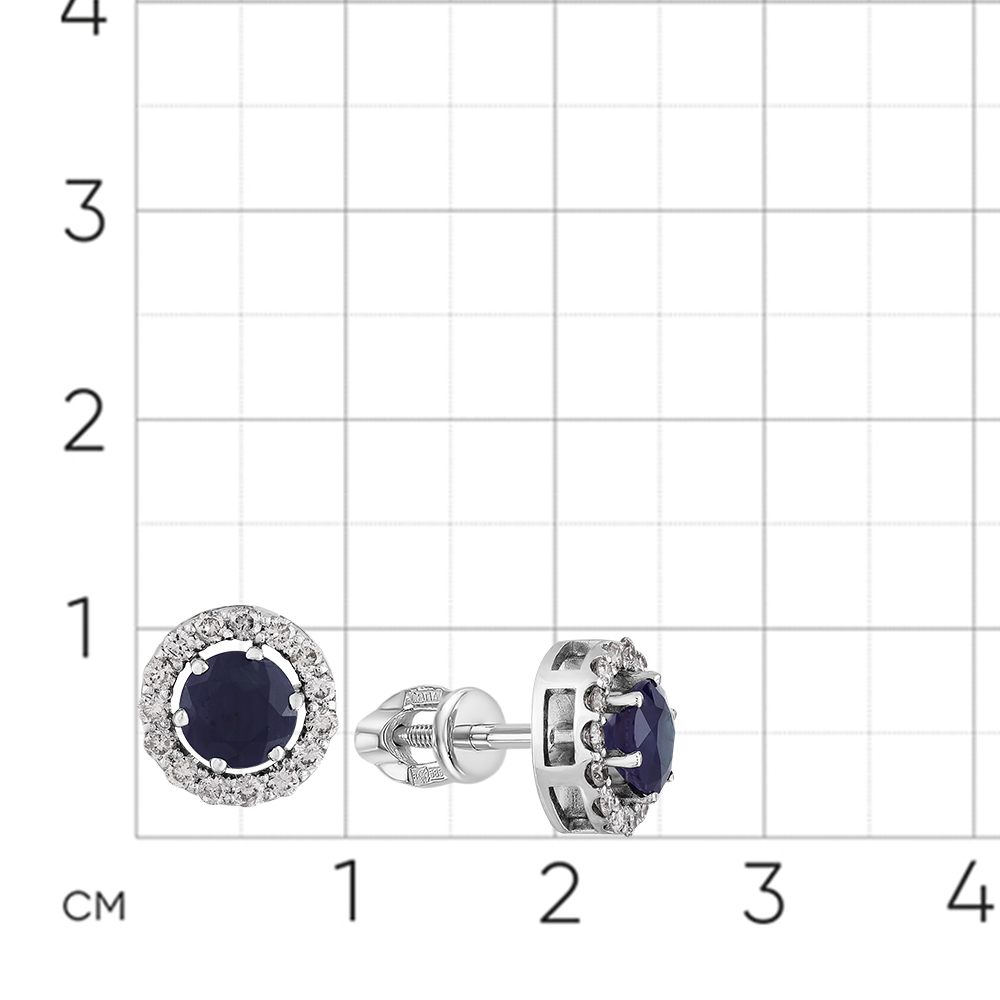 Серьги - пусеты с натуральными сапфирами, в окружении сверкающих бриллиантов, выполнены из белого золота 585 пробы