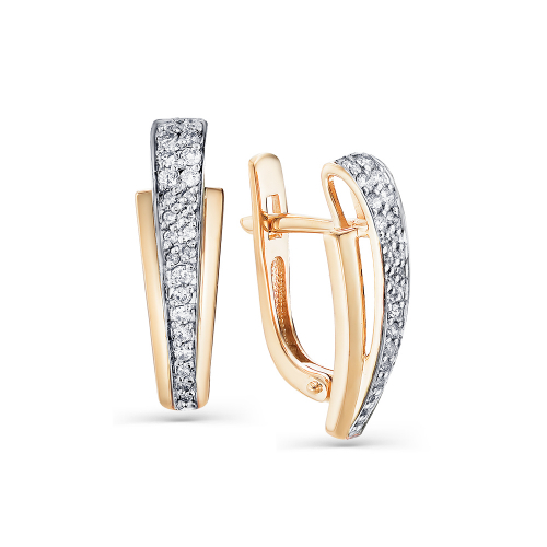 Стильные серьги, украшенные дорожками сверкающих бриллиантов, выполнены из красного и белого золота 585 пробы
