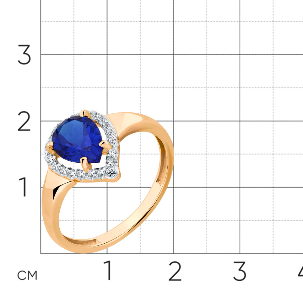Изящное кольцо, выполненное в сочетании красного и белого золота 585 пробы, поражает своим элегантным дизайном и гармоничной композицией. Центральным элементом украшения является синтетический сапфир глубокого синего оттенка, который символизирует мудрость и духовную чистоту. Камень обрамлен россыпью сверкающих фианитов, создающих иллюзию бесконечного сияния.Украшение представлено брендом MAGIC STONES. В комплект поставки входит: