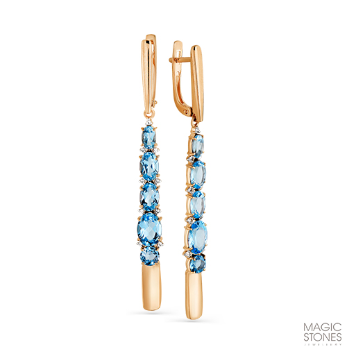 Удлиненные серьги из красного золота с топазом Swiss и фианитами — это элегантное украшение, сочетающее в себе теплоту золота и игру света камней