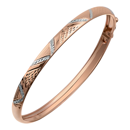 Жесткий браслет из красного и белого золота 585 пробы с обработкой алмазной гранью — это элегантное и стильное украшение, сочетающее в себе два благородных оттенка золота и уникальную технику обработки
