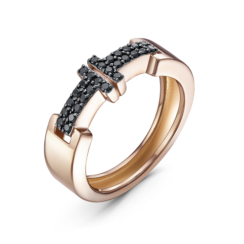Стильное кольцо оригинального дизайна выполнено из красного золота 585 пробы, украшено россыпью сияющих черных фианитов