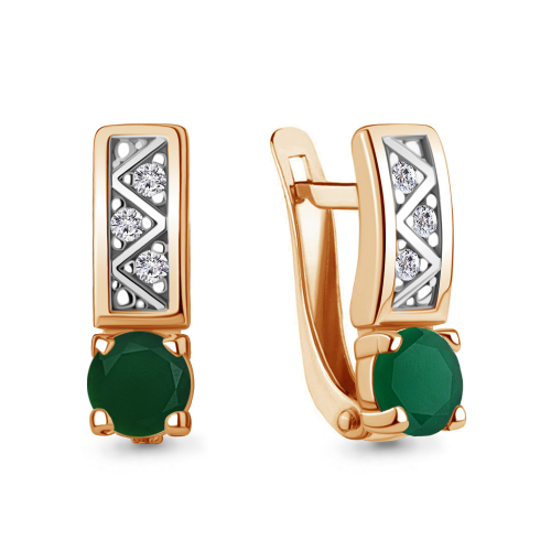 Серьги из красного и белого золота с зеленым агатом и фианитами — это гармоничное сочетание контрастных цветов и фактур