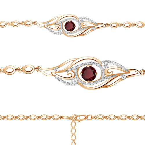 Браслет с гранатом и фианитами в фэнтезийном дизайне — это настоящее произведение искусства