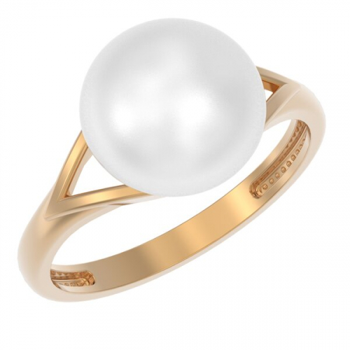 Нежное кольцо выполнено из красного золота 585 пробы, украшено великолепным жемчугом белого цвета