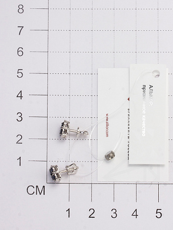 Серьги - пусеты с натуральными сапфирами и сверкающими бриллиантами, выполнены из белого золота 585 пробы